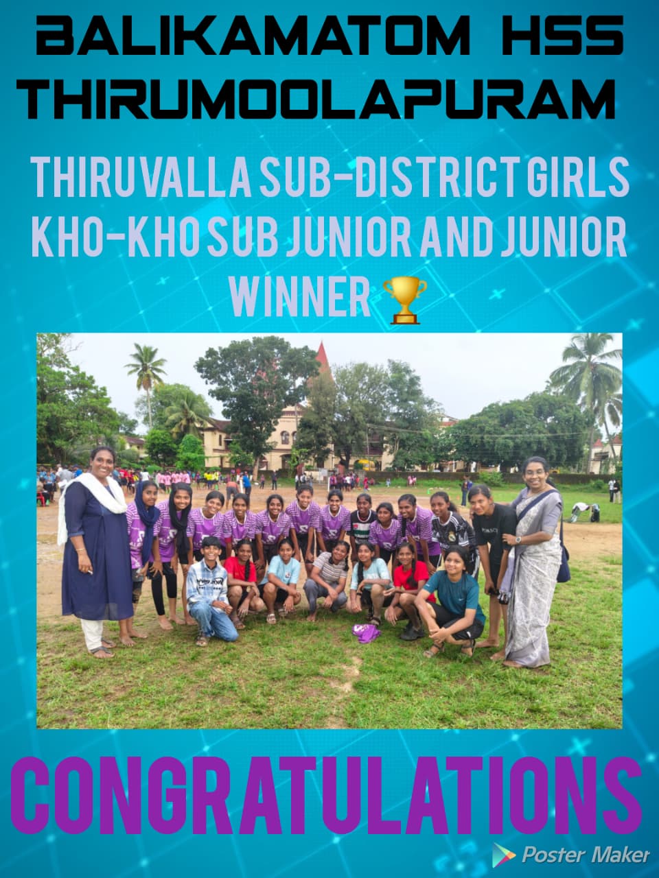 THIRUVALLA SUB DISTRICT GIRLS KHO-KHO CHAMPIONSHIP WINNERS (SUB JUNIOR & JUNIOR)
