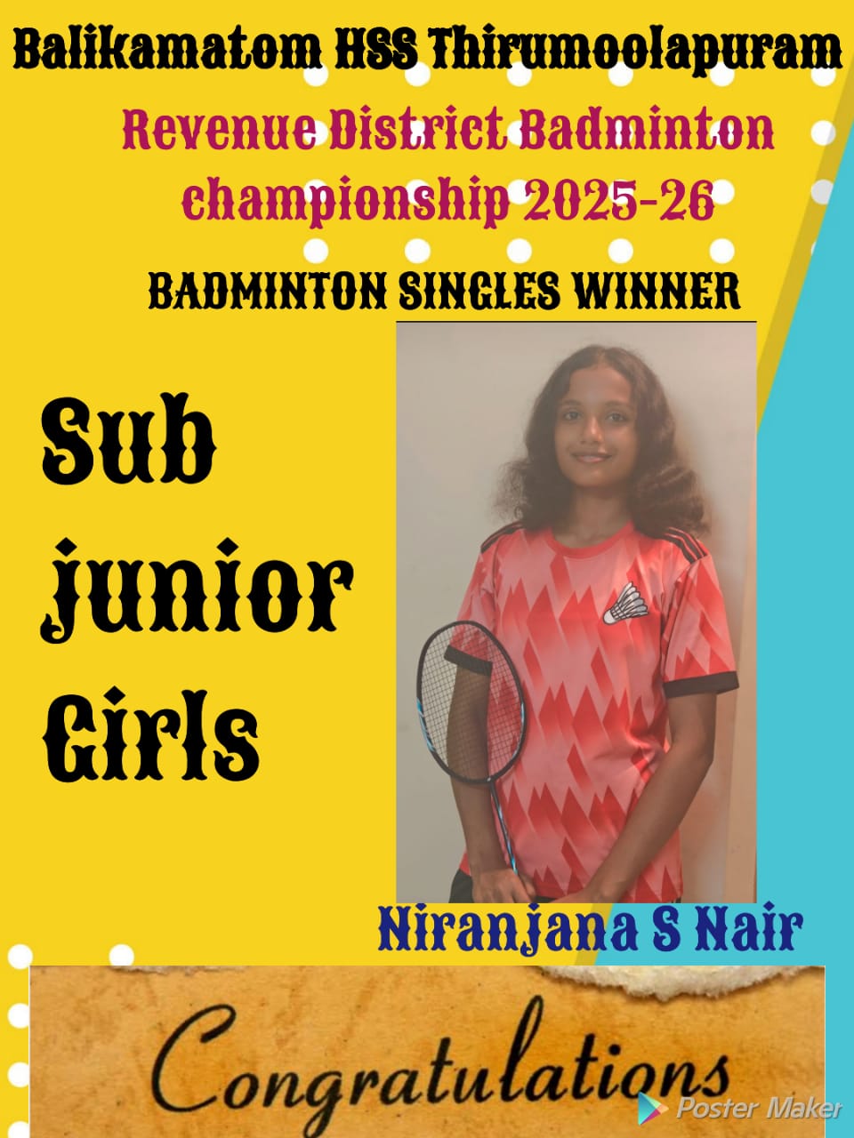 REVENUE DISTRICT BADMINTON CHAMIONSHIP-SUB JUNIOR - NIRANJANA S NAIR