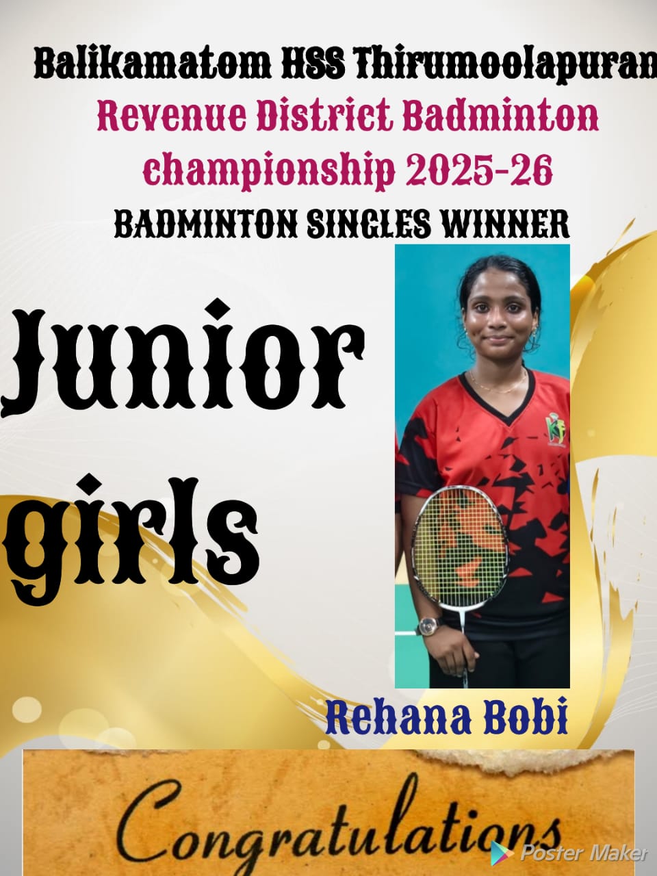 REVENUE DISTRICT BADMINTON CHAMIONSHIP-JUNIOR-REHANA BOBI
