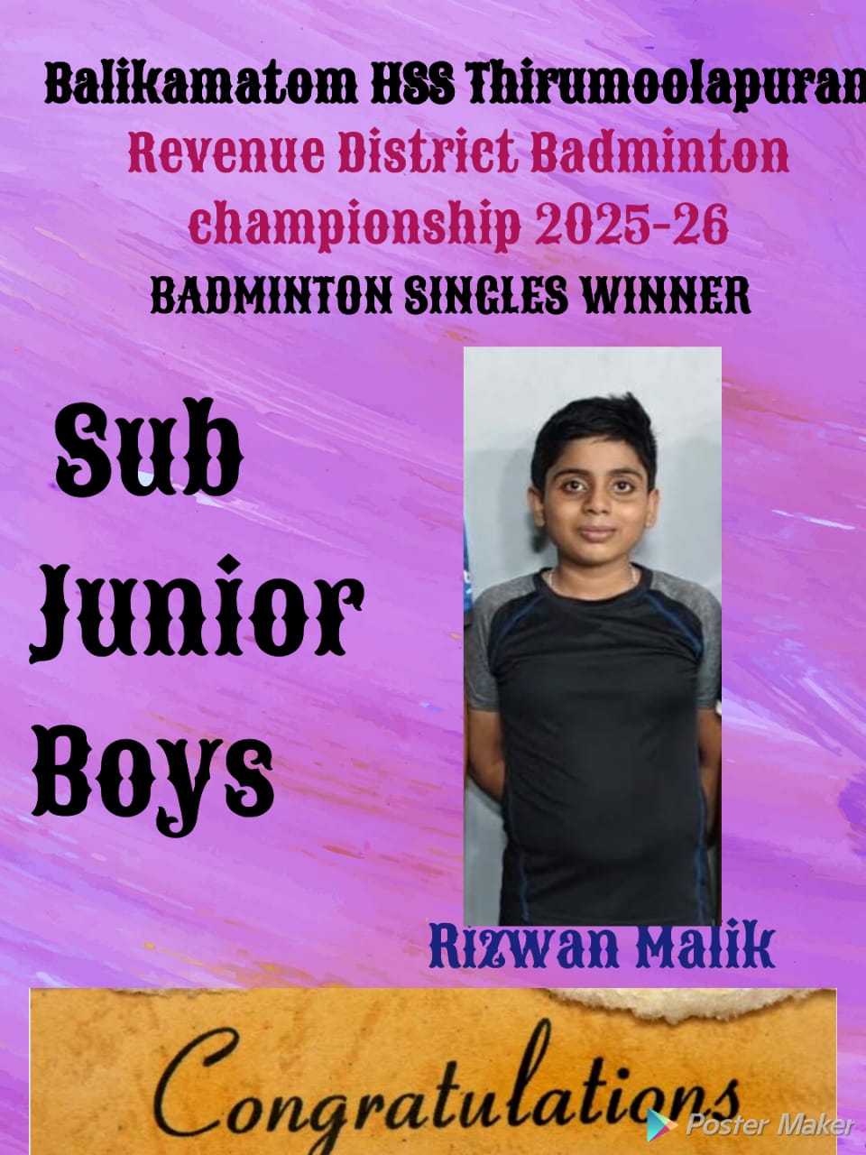 REVENUE DISTRICT BADMINTON CHAMIONSHIP-SUB JUNIOR-RIZWAN MALIK